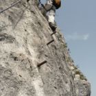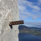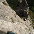 Es geht 200 (!) m über dem Abgrund auf zehn Zentimeter langen Trittstiften, leicht ansteigend etwa 20 m um den mächtigen Pfeiler herum. Absolut krass! Es ist nicht schwierig, aber das Gefühl – Unbeschreiblich! Du denkst, jeder Tritt kann dein Letzter sein.