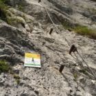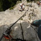 Achtung! Stellenweise können hier die Steine etwas locker sein. Das gilt auch fürs darauffolgende Nusskipferl. Am Götterquergang ist auch das Bild im Abschnitt Genussklettersteigstufe C/D im Ratgeberartikel Klettersteig Schwierigkeitsgrad entstanden. Du erinnerst dich? 😉