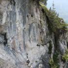 Schlüsselstelle am Sulzberg Überhang (C) und im Zick-Zack nach oben