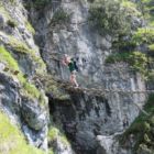 Dürfte aber kein sonderliches Problem für den geübten Klettersteigler darstellen. Weiter geht es recht gemütlich (A-B) bis zu einer Schlucht. Für den folgenden großen Schritt über die Schlucht sollte man dann halbwegs schwindelfrei sein.