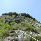 Geschafft? Leider nein. Noch lange nicht! Der anschließende steile teilgesicherte Aufstieg (A/B) zum Gipfel des Grünstein ist etwas langatmig. Immer wenn man denkt, man hat es endlich geschafft, kommt die nächste Bergkuppe. 🙁