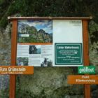 An der Hinweistafel „Grünstein Klettersteig“ geht es rechts zur Einstiegswand. Am Hinweisschild ist auch ein sehr guter Platz zum Klettersteigset anlegen. Helm aufsetzen nicht vergessen. Bald kommt man zum offiziellen Anseilplatz, der aber durchaus belegt sein kann – vor allem in den Sommermonaten. Jetzt gabelt sich der Weg. Zum Einstieg zum Isidor nimmt man den linken Weg.