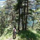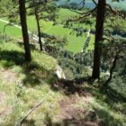 Der Rückweg führt rechts in den Wald hinunter. Vorsicht, stellenweise ist der Pfad sehr schmal, steil und erdig. Außerdem ist er ungesichert, also aufpassen. Besonders im Herbst kann es sein, dass hier einiges an Blättern herumliegt, was es nicht leichter macht.
