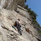 Der Pfeiler (C/D) bis zur Position 7 ist nicht schwer, vorausgesetzt du beherrscht die Kleine-Schritte-Technik. Tipp: Es gibt auch „unsichtbare“ Trittmöglichkeiten im Fels – also Augen auf! Nutze diese, und die Stelle wird halb so schwer werden. Achtung, der Fels kann hier etwas feucht sein. Dann ist der Grip nicht so gut.