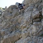 Hier zeigt der EDELRID mehr und mehr seine wahre „Härte“. Dieser Steigabschnitt hat es in sich – geht es doch hier auf winzigen Tritthilfen etwa 10 m eine steile Felswand rauf (B/C), bei der man möglichst nicht abrutschen sollte.