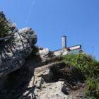 Die Gipfelwand am Iseler Klettersteig ist nicht sonderlich schwer und auch relativ kurz. Am Ausstieg kann es etwas eng am Steig werden, da der Seilverlauf durch einen kleinen grasbewachsenen Kamin führt. Ziemlich unvermittelt steht man dann auch schon oben am Gipfelplateau und teilt sich den Platz am Gipfelkreuz mit den unzähligen anderen Normalwanderern, die über den Normalweg aufgestiegen sind.